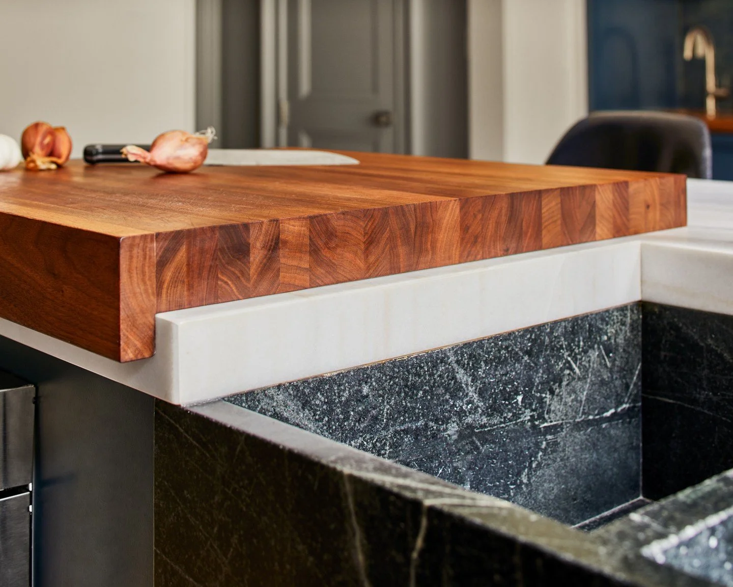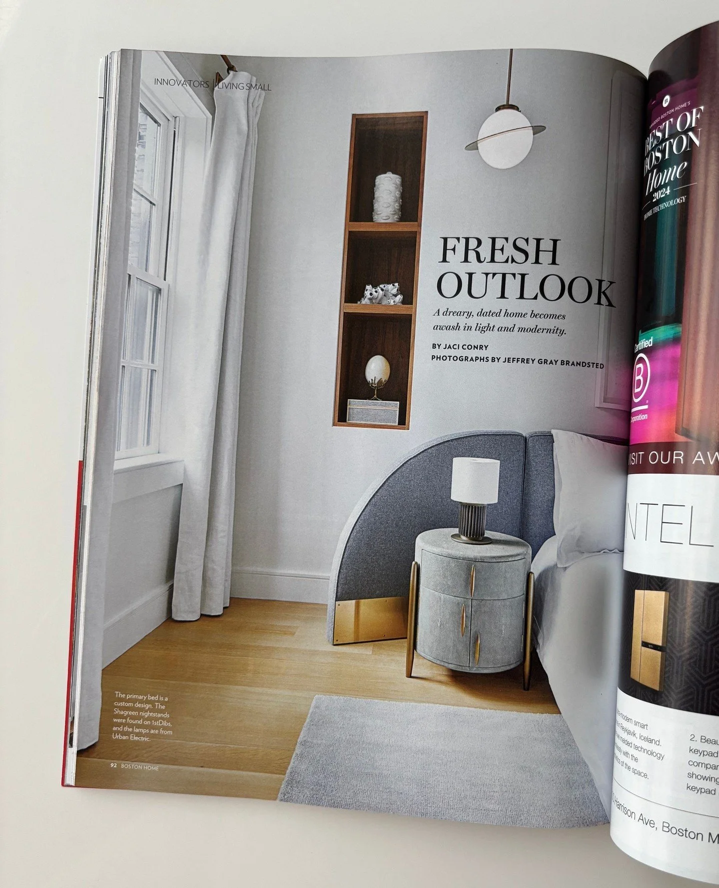 We designed this apartment combination by connecting the existing ground floor one-bedroom, via a new interior winding stair with the re-configured unit above, joining the spaces to create one cohesive home. When the apartment upstairs became available, the owner jumped at the chance to create a live-work sanctuary to support their needs as a textile artist and entrepreneur. We created separate public and private spaces while also allowing for the layering in of the owner’s collection of materials, artwork and objects from their travels.